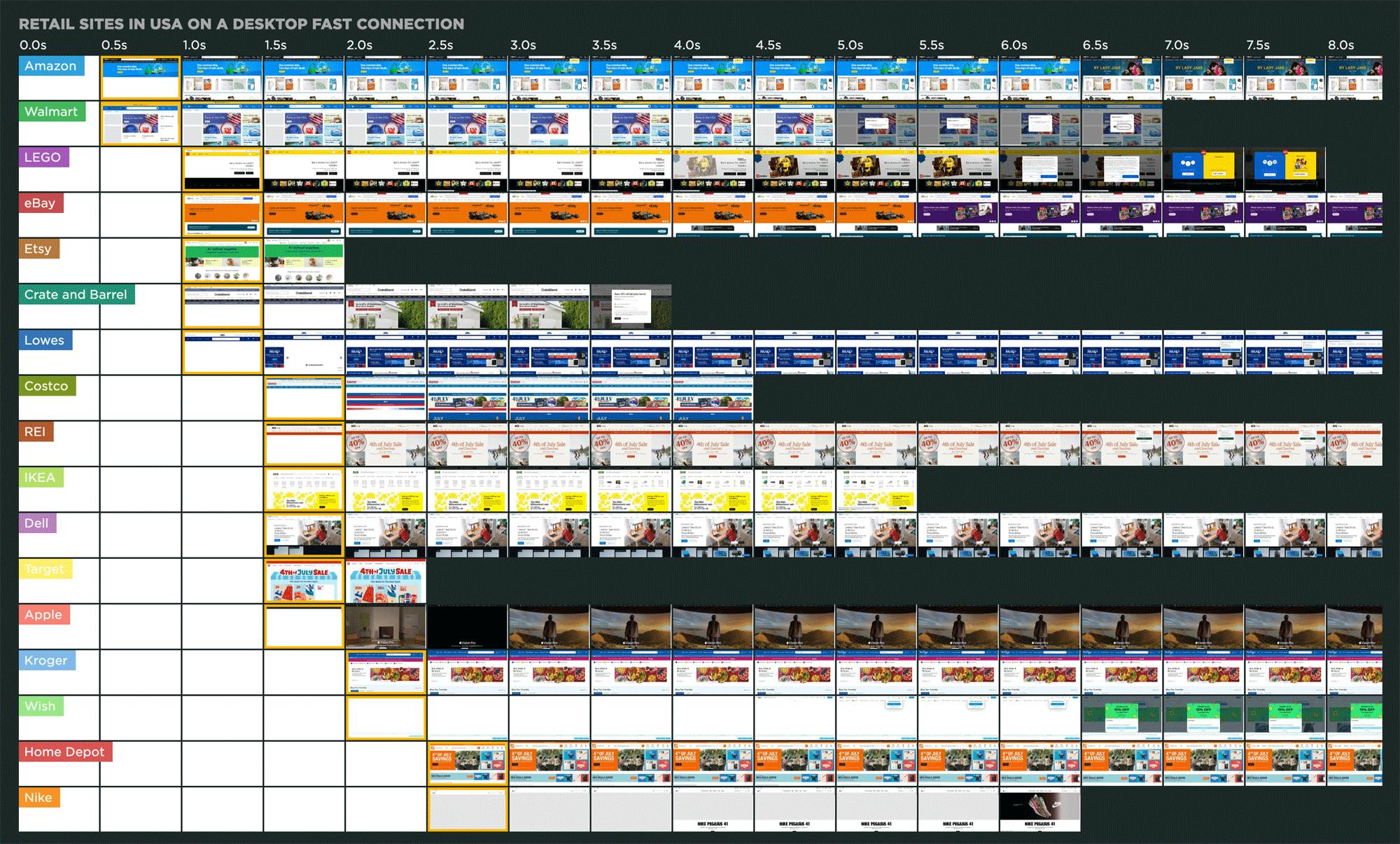 - 我查看了从SpeedCurve的页面速度基准仪表板中随机选择的20个行业领先网站的合成测试结果。